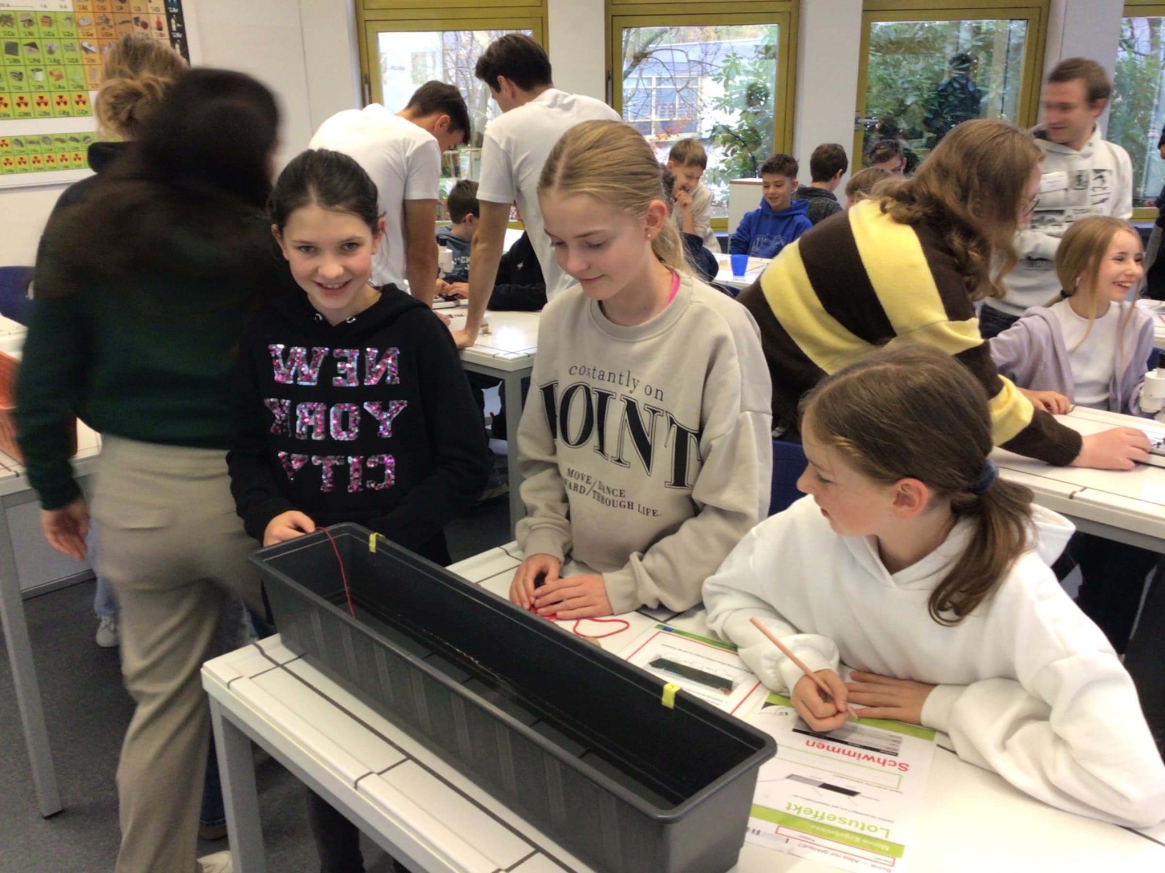 MINT-Team der TH Deggendorf führt mit den Sechstklässlern der Realschule Experimente durch und veranschaulicht die Grundlagen der Bionik.