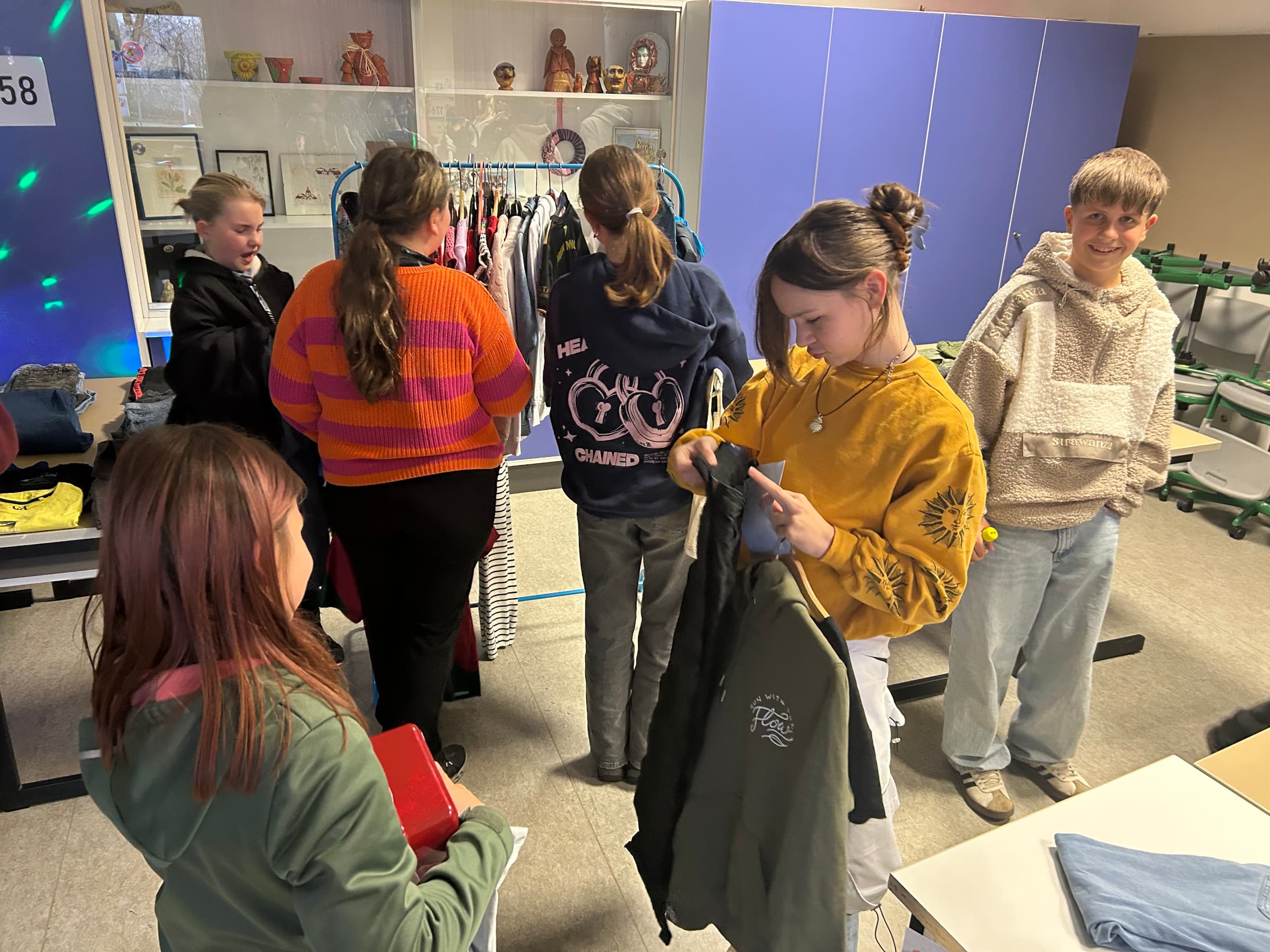 In einem eigens hergerichteten Raum verwandelte sich die Schule für einen Vormittag in eine bunte Tauschlandschaft. Bei Musik und stimmungsvoller Diskobeleuchtung suchten die Jugendlichen neue Lieblingsstücke aus und gaben im Gegenzug gut erhaltene Kleidungsstücke weiter. Schnell zeigte sich, dass nachhaltiger Konsum nicht nur sinnvoll ist, sondern auch richtig Spaß machen kann.