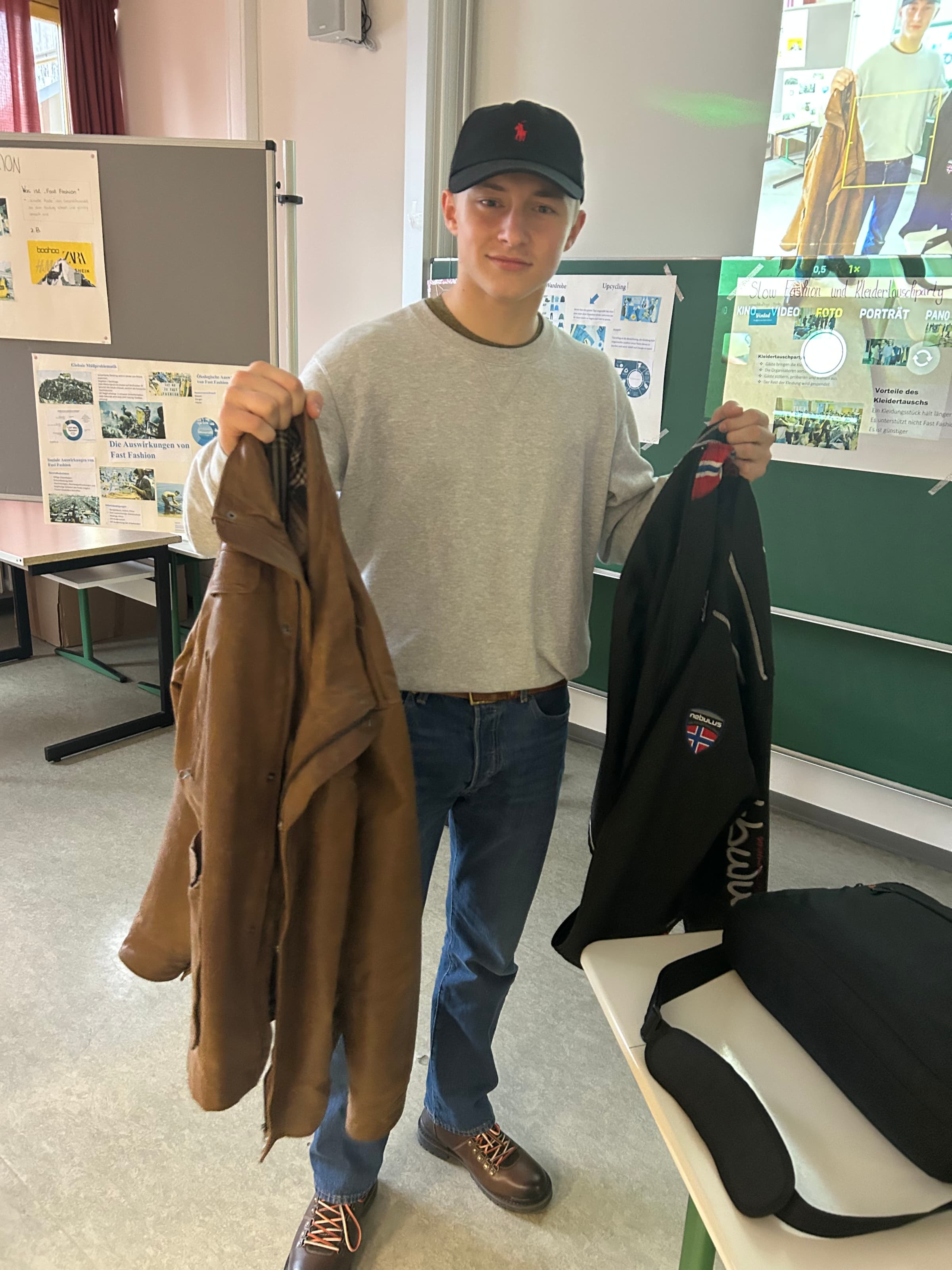 Begleitet wurde die Aktion von einer Ausstellung, die von den Ethikschülerinnen und -schülern der 9. und 10. Klassen zusammen mit Frau Hellberg konzipiert wurde. Sie informierten eindrucksvoll über die globale Textilproduktion, den hohen Ressourcenverbrauch und die Folgen der Modeindustrie für Klima und Umwelt. Die Ausstellung regte viele Besucherinnen und Besucher zum Nachdenken an und machte deutlich, wie stark Konsumentscheidungen mit sozialer und ökologischer Verantwortung verbunden sind.