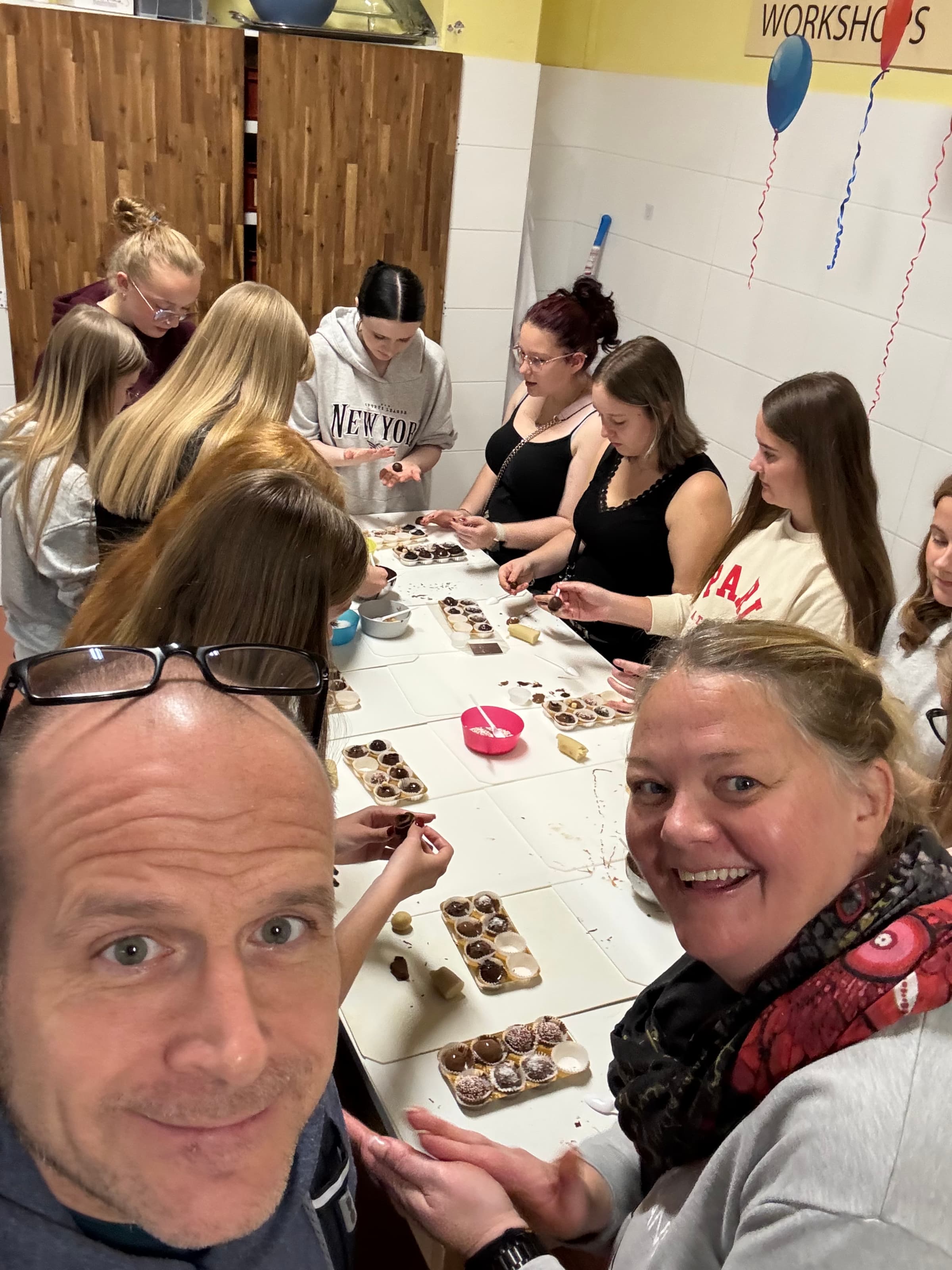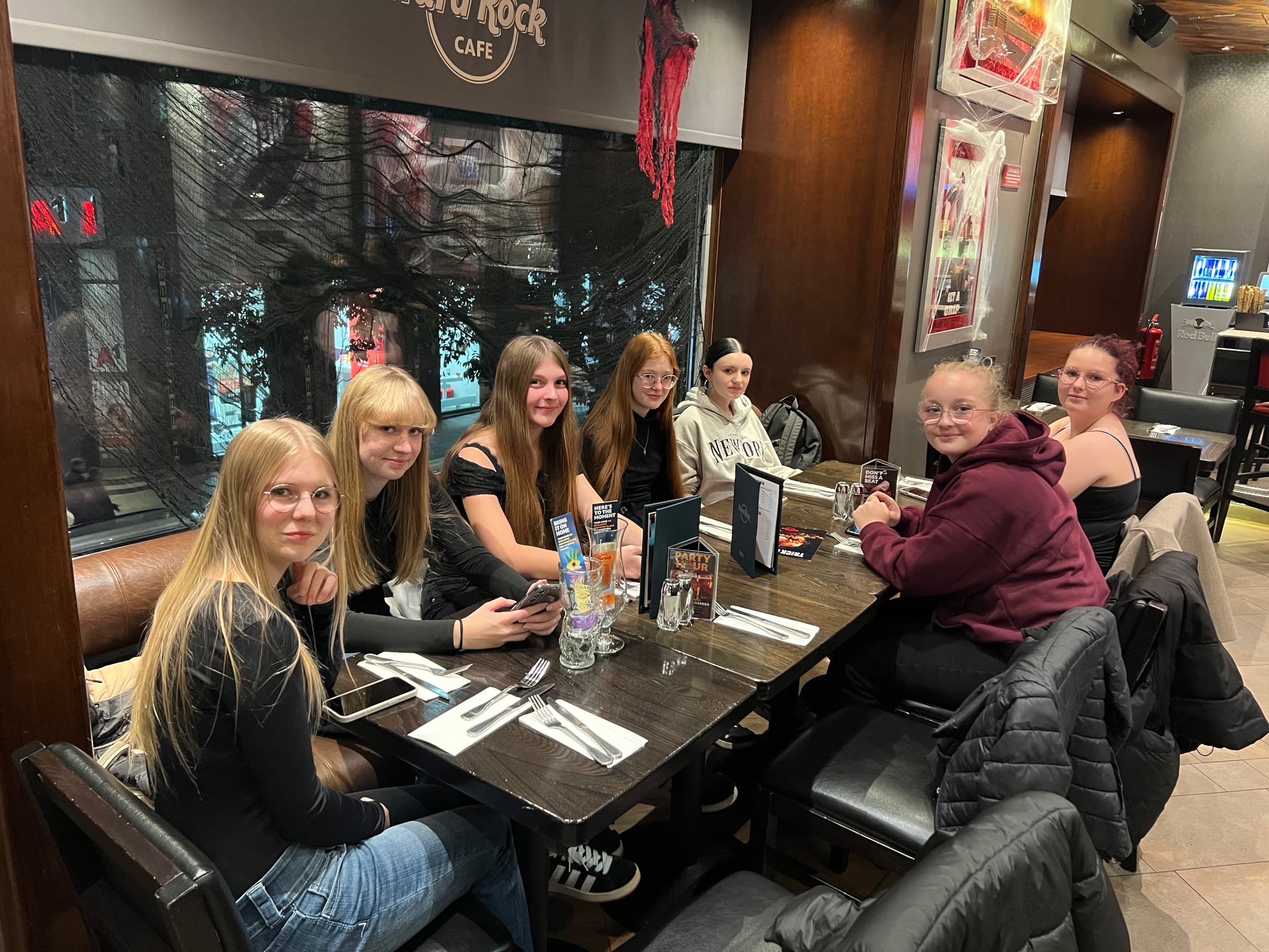 Am Donnerstag ging es ins Schokoladenmuseum. Manche von uns nahmen an einem Pralinen-Workshop teil und stellten eigene Pralinen her. Am Nachmittag besuchten einige Interessierte mit Frau Weiß „Time Travel Vienna“, wo man bei einer virtuellen 5D-Bootsrundfahrt von Kaiserin Sisi persönlich viel über die Stadt Wien erfährt. Am Abend gingen wir alle zusammen ins Hard Rock Café und verbrachten dort einen schönen letzten gemeinsamen Abend. Einziges Manko war hier allerdings für manche, dass das Personal auf Wunsch von Herrn Selbach nur Englisch mit uns sprach – einen Nachteil muss es ja haben, wenn man mit zwei Englischlehrern unterwegs ist.