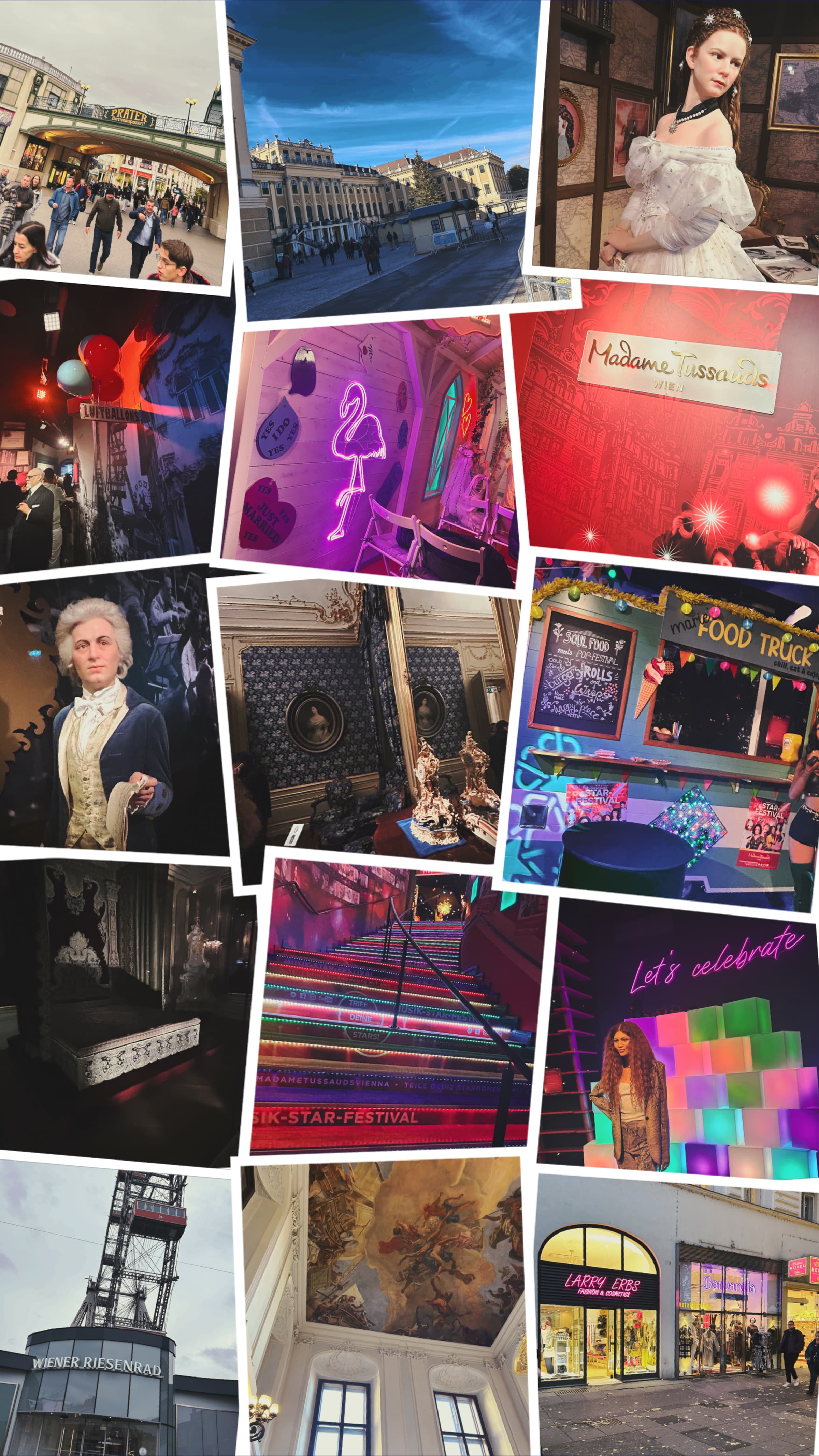 Am Dienstag besuchten wir das Schloss Schönbrunn. Dort bekamen wir über einen Audioguide einen Einblick in das Leben des Kaiserpaars Sisi und Franz. Das große Schloss und die schöne Anlage haben uns sehr beeindruckt. Nach der Besichtigung bekamen wir die Aufgabe gestellt, in Kleingruppen mit den öffentlichen Verkehrsmitteln zum Prater zu fahren. Den Schülern, die zuerst ein Selfie mit dem Riesenrad schickten, winkte ein Preis. In Wiens weltberühmten Vergnügungspark angekommen, hatten wir zunächst Freizeit und konnten verschiedene Attraktionen ausprobieren. Danach besuchten wir noch alle gemeinsam Madame Tussauds und schossen viele lustige Fotos mit den Wachsfiguren.