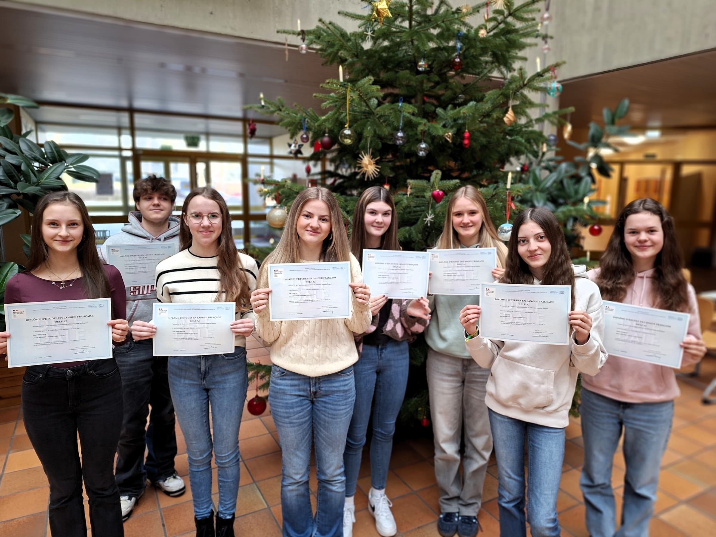 Kurz vor Beginn der Weihnachtsferien durften sich unsere Französischschülerinnen und -schüler über ein ganz besonderes vorgezogenes Geschenk freuen: Die originalen DELF A2-Diplome sind eingetroffen!