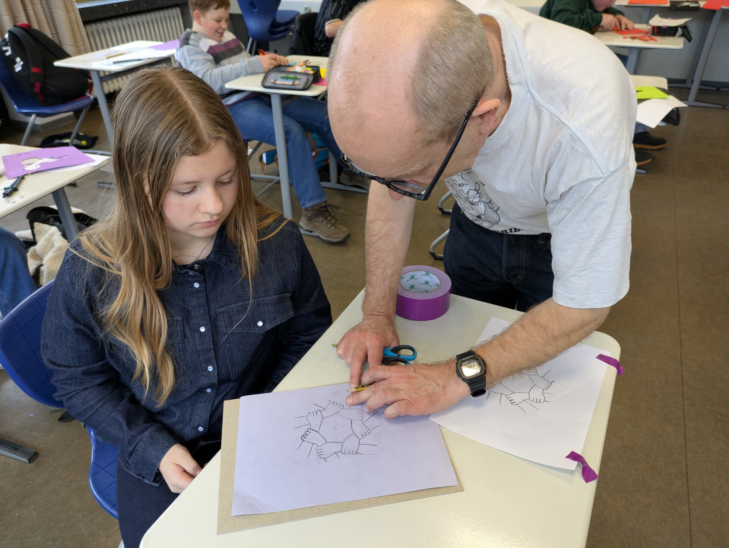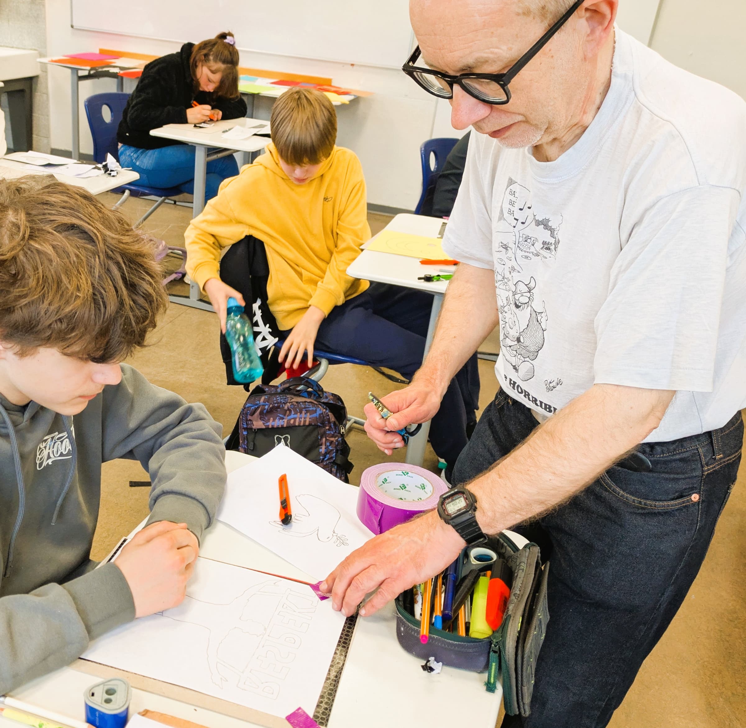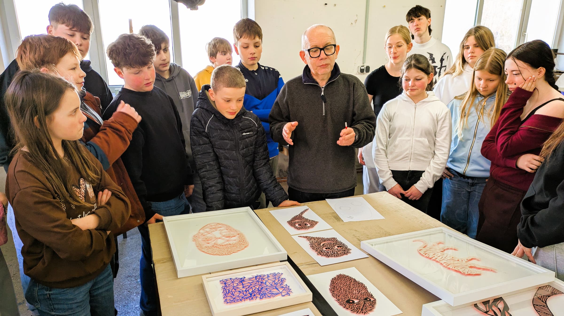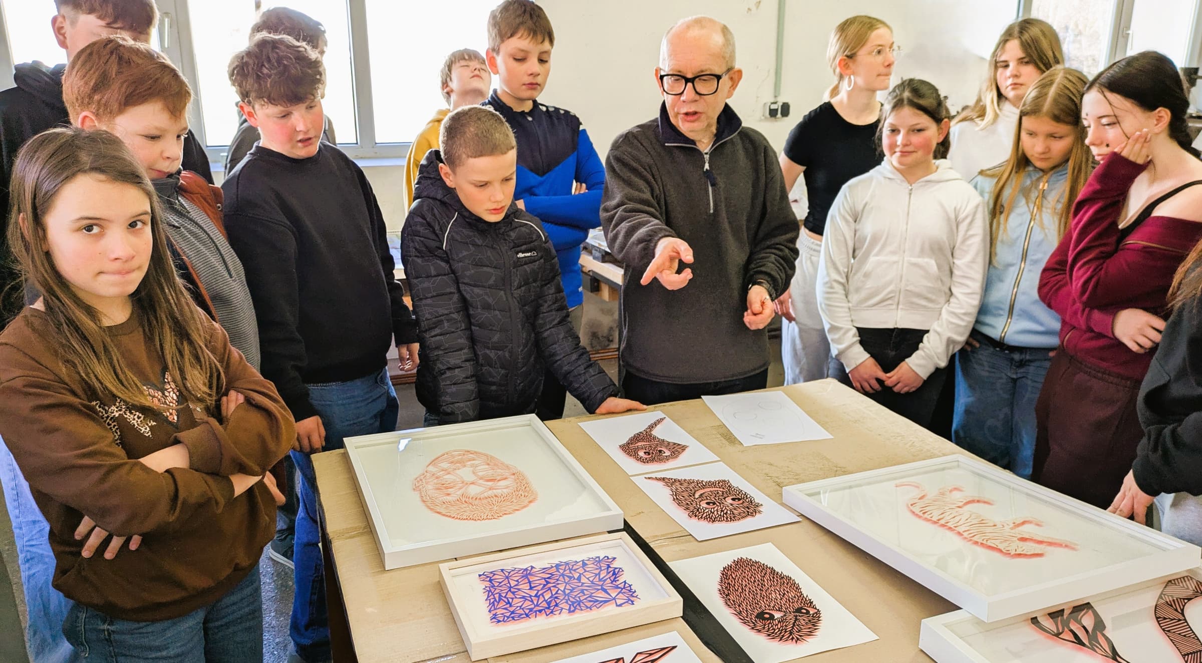 Das Projekt, das in Kooperation mit dem „Bildwerk Frauenau“ realisiert wird, bringt frischen Wind in den Kunstunterricht. Unterstützt werden die beiden Kunstlehrkräfte Konrad Weiß und Katrin Eberl dabei von einem echten Experten: Der Regensburger Künstler Hans Lankes ist regelmäßig zu Gast, um den Kindern bei ihrem kreativen Prozess über die Schulter zu schauen und wertvolle Tipps zu geben.