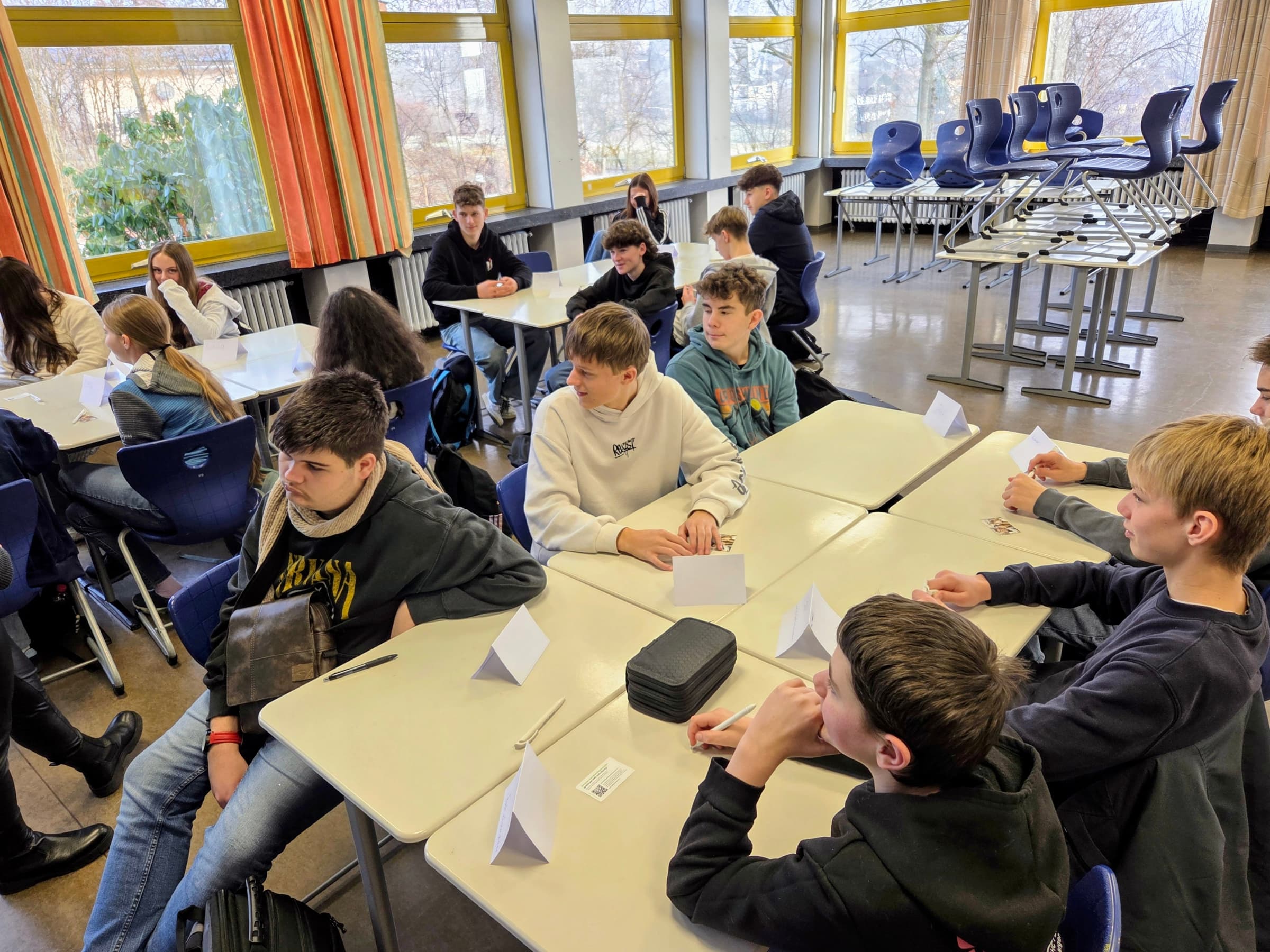 Ein weiterer Schwerpunkt lag auf dem Üben von Vorstellungsgesprächen. Dabei konnten die Schülerinnen und Schüler typische Fragen kennenlernen und sich selbst in Bewerbungssituationen ausprobieren. Ergänzt wurde das Training durch einen Einstellungstest, der einen realistischen Einblick in die Anforderungen vieler Ausbildungsbetriebe bot. So erhielten die Jugendlichen wertvolle Hinweise zu ihren Stärken und möglichen Verbesserungsmöglichkeiten.